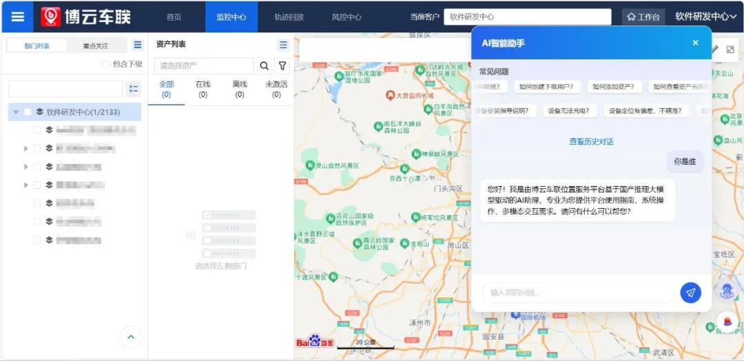 通過大模型的多輪對(duì)話與意圖識(shí)別能力,打破傳統(tǒng)平臺(tái)菜單層級(jí)限制,用戶可直接以自然語(yǔ)言指令完成復(fù)雜操作(如“查詢XX車輛最近24小時(shí)軌跡報(bào)告”),系統(tǒng)自動(dòng)解析語(yǔ)義、調(diào)用接口并生成結(jié)構(gòu)化結(jié)果?,提升用戶體驗(yàn)。
